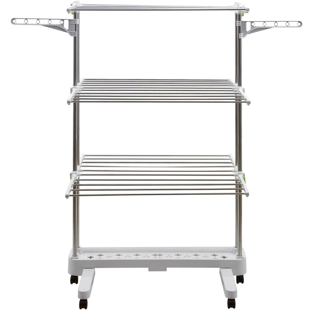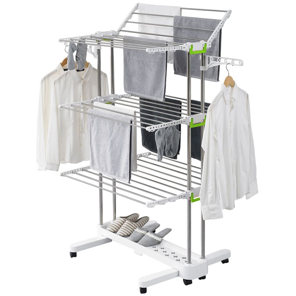 SND Home 3-Tier Collapsible Clothes Drying Rack with Casters, Stainless Steel Hanging Rods, Indoor & Outdoor Use