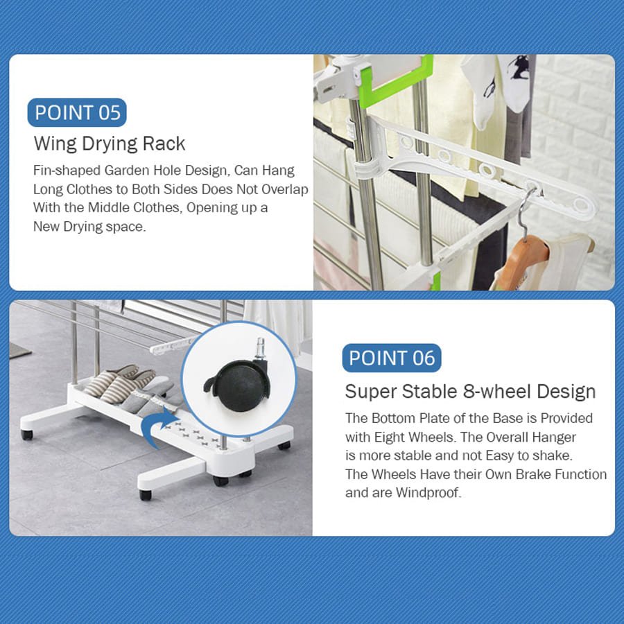 • Our Indoor/Outdoor Standing Airfoil-style Clothes Drying Stand hangers are Easy to Assemble. Instruction detail is provided and you can easily install it step by step according to the manual
