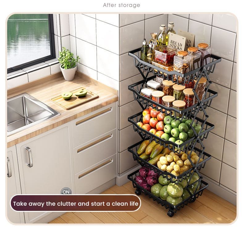- Efficient and Ventilated Design: The open design ensures maximum airflow, preventing fruits and vegetables from rotting. It is perfect for decluttering various areas of your home, including the kitchen, bathroom, pantry, laundry, bedroom, and garage.