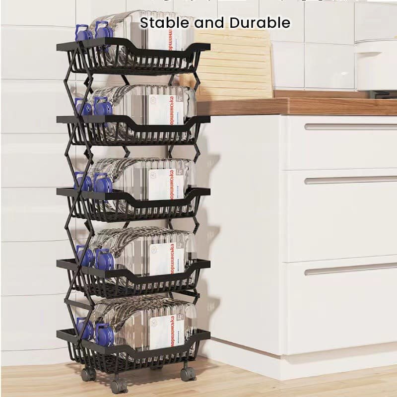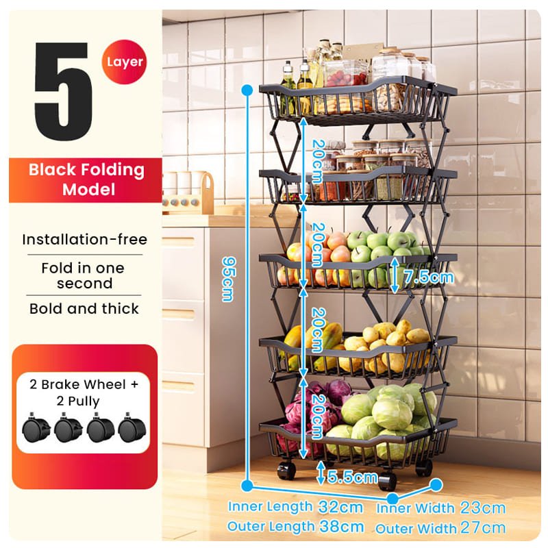 Introducing our multifunctional 3-tier basket cart, perfect for storage and display. Use it as a Vegetable & Fruit Organizer Rack, potato and onion storage bin, spice, and snack organizer. You can even use it as a veggie holder or a kids’ bathtub toy bin. Its foldable design is convenient and helps save space, making it ideal for your kitchen, bathroom, bedroom, living room, pantry, or wherever you need extra storage space. This convenient Vegetable & Fruit Organizer Rack comes with 4 castors, allowing you to move it easily anywhere in your home. Two of the castors can be locked to ensure safety. We’ve included mini spanners to help you install these 4 rolling wheels.