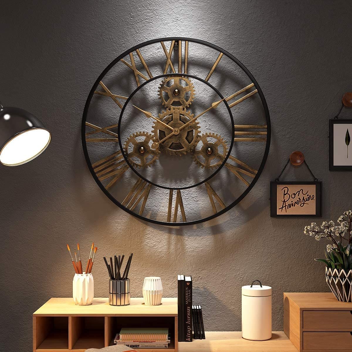 - Wall Clock Silent – Using high-quality quartz sweeping movement, non ticking wall clock, keeping a quiet and accurate state, providing a quiet and comfortable environment. The Center dial features a collection of layered gears creating a unique and stylish statement piece. (Gears are stationary and do not rotate)
