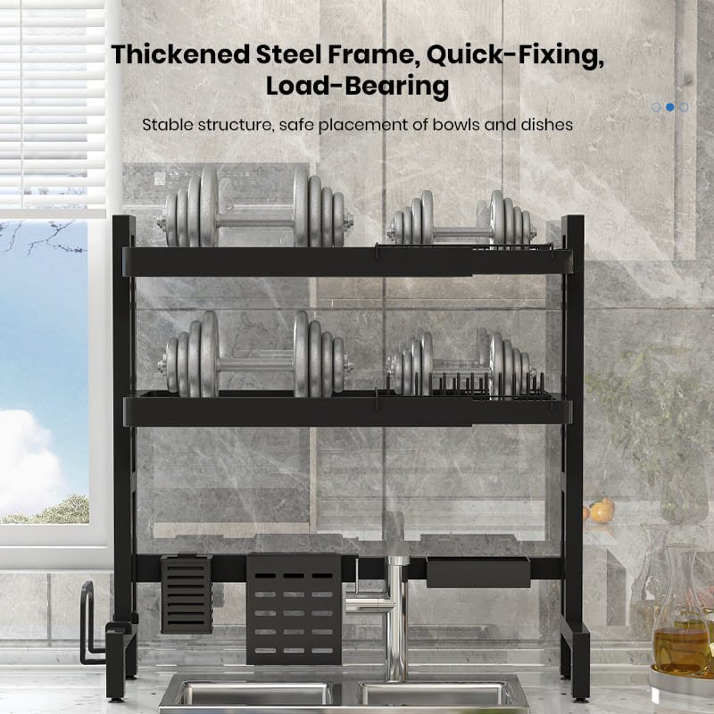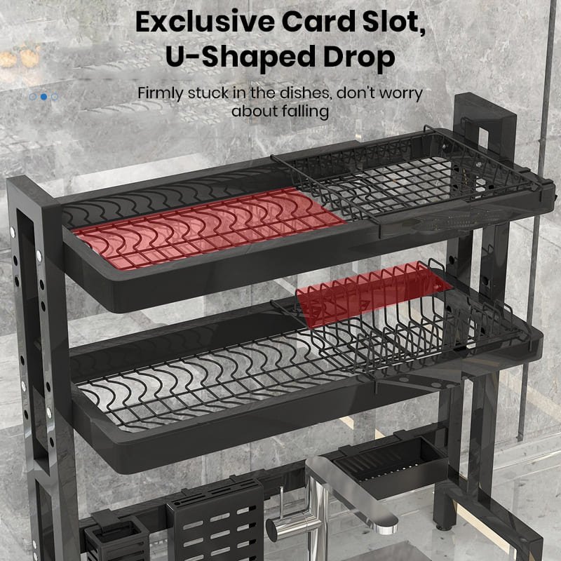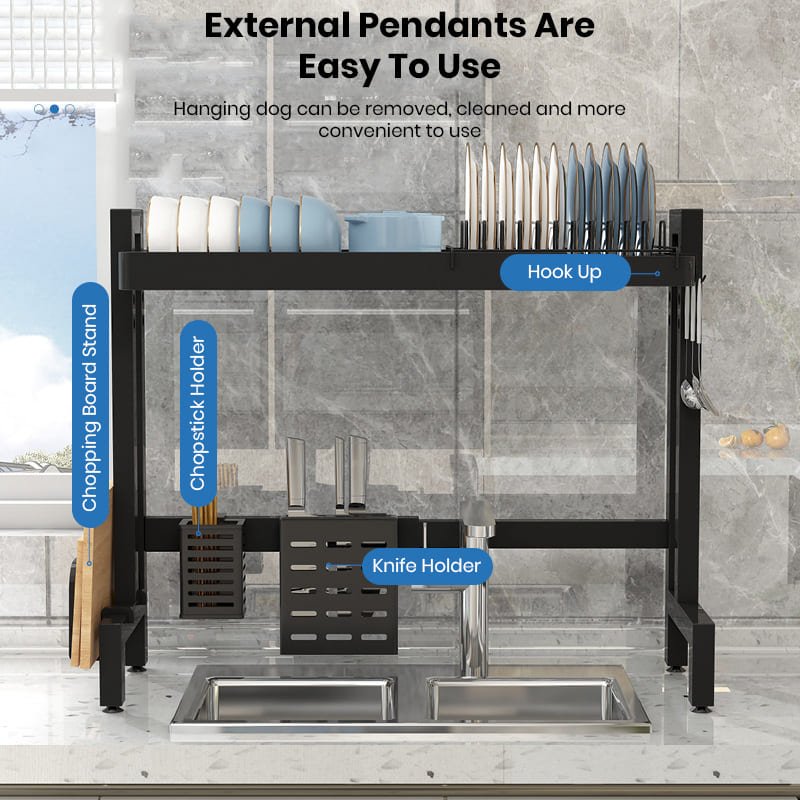- Over-the-sink design: The rack is designed to fit over the sink, allowing for easy access and draining water directly into the sink.