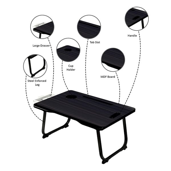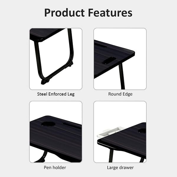 your hands and then enjoy the drinks safely on your bed. And Side Drawer for storing pens, cables or U disk. Can more easily enjoy your life. - MULTIPURPOSE LAPTOP DESK :This bed table will be a perfect addition to your office or home. You could use it on bed, couch/sofa, desktop and floor. A snack tray for watching TV, a laptop stand for relaxing in bed or a standing