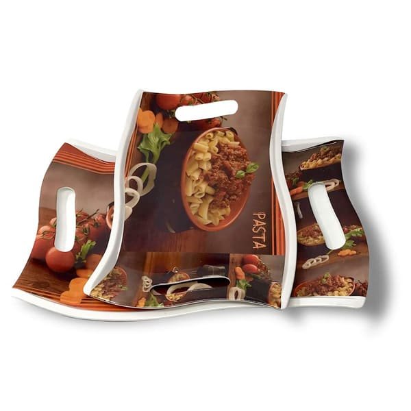 SND Homes Crystal Melamine Serving Tray, Set of 2 (Multicolor, White, Medium and Large Size) Vista Series