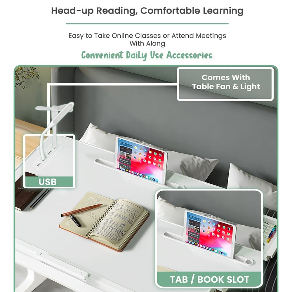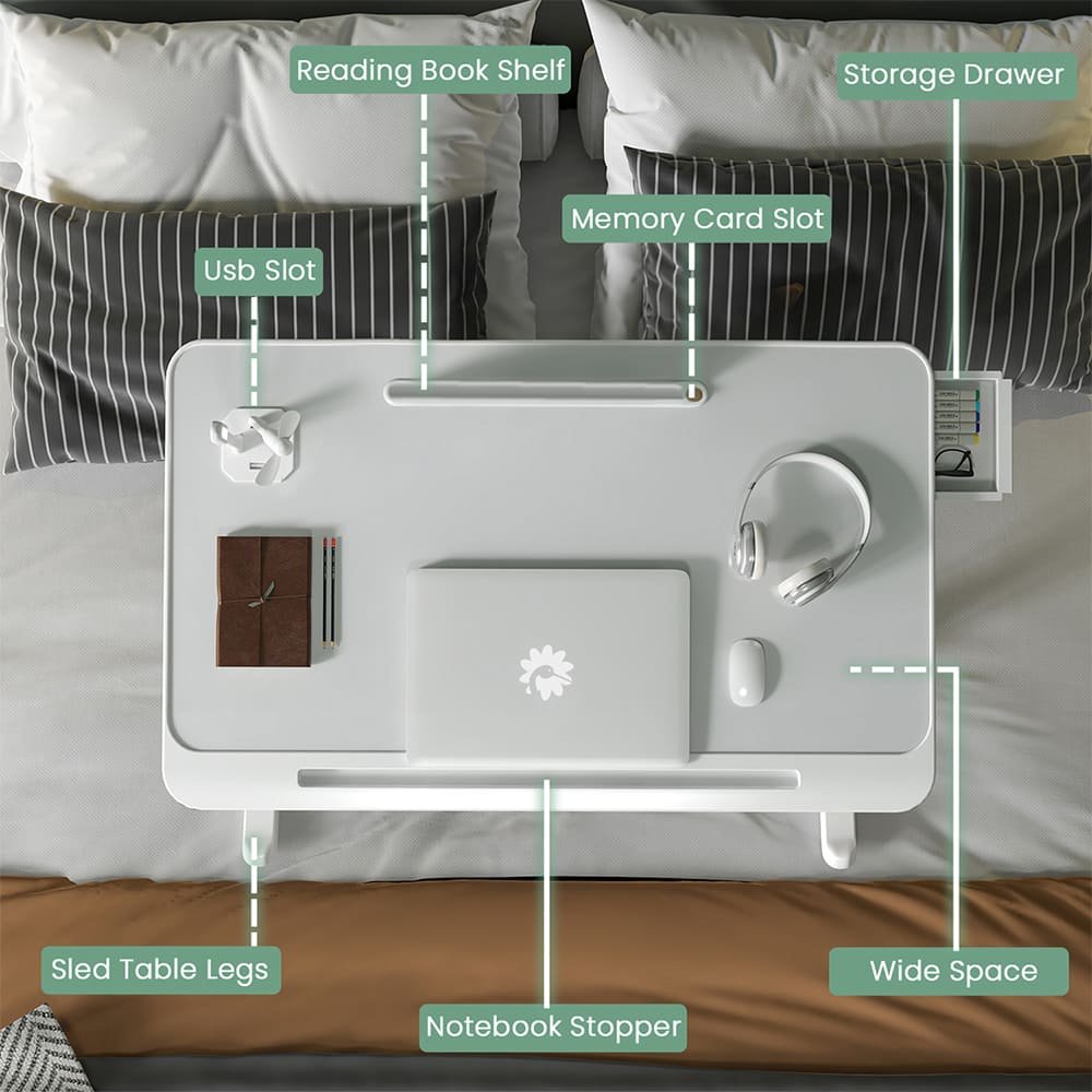 • Inclusions: Complete set of Bed table, USB Cable, USB Night Lamp, USB Fan