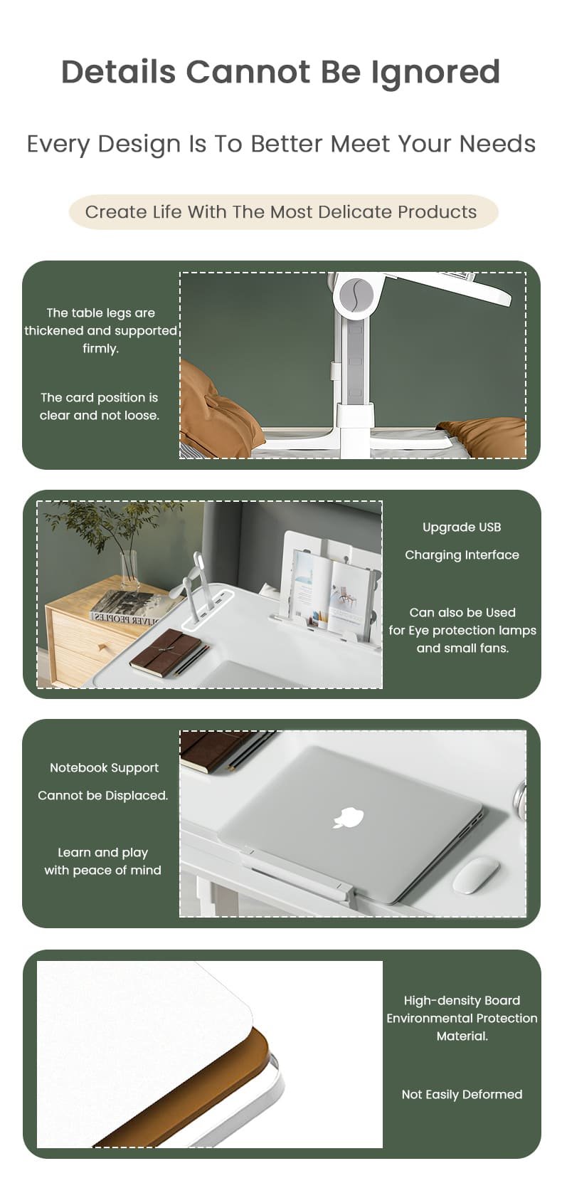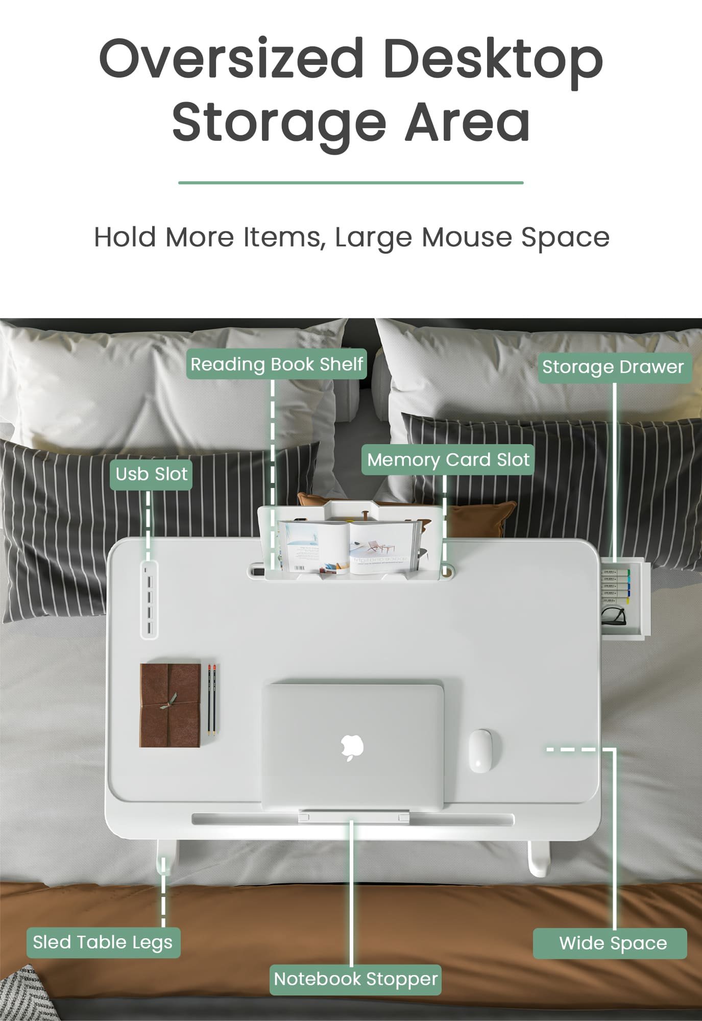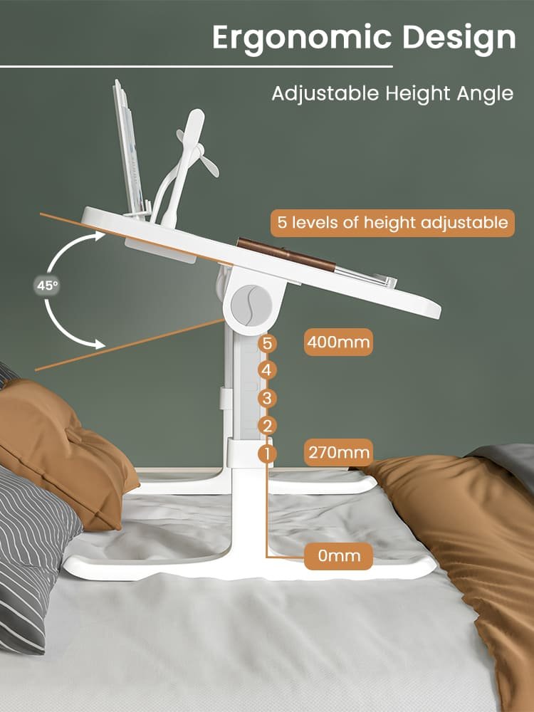 - Inclusions: Complete set of Bed table, USB Cable, USB Night Lamp, USB Fan