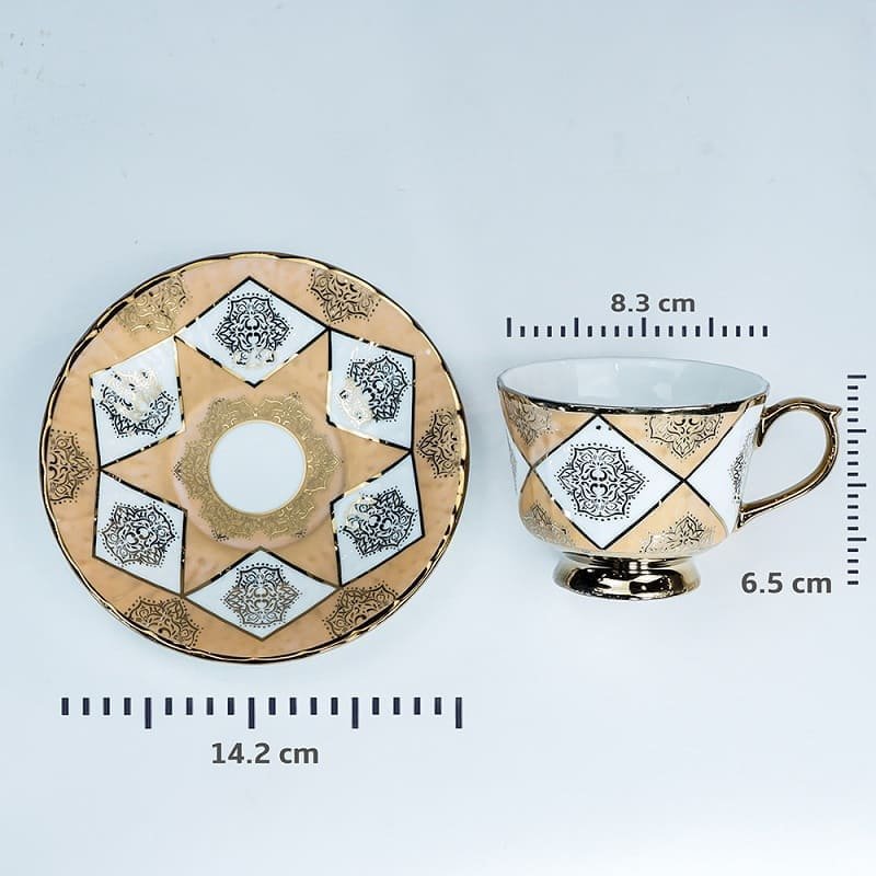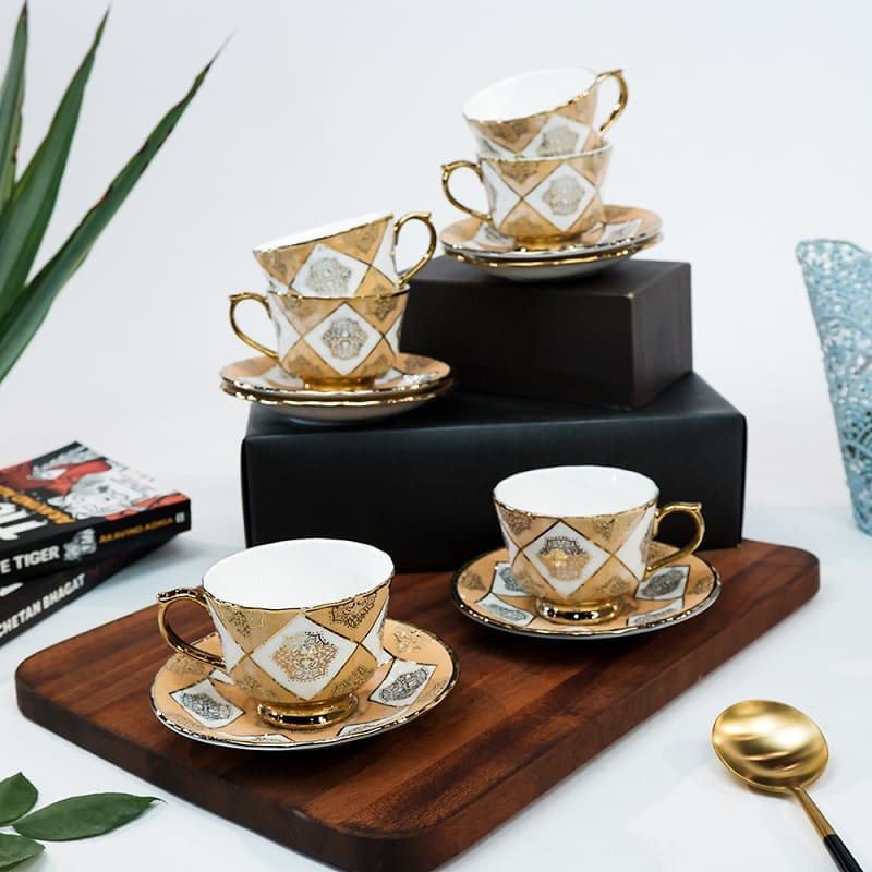 SND Homes Pack of 6 Bone China Cup & Saucer Set of 6 – Carpet Series (Golden)
