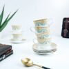 Introducing our beautifully crafted teacup and plate set, the perfect addition to any kitchen or dining room. Our set includes cups and saucers, each uniquely designed with intricate patterns and a glossy finish. Made with high-quality ceramic materials, our cups and saucers are durable, dishwasher safe and perfect for daily use.