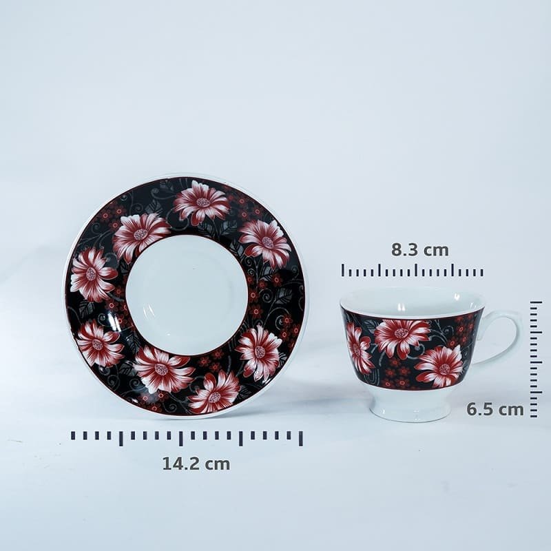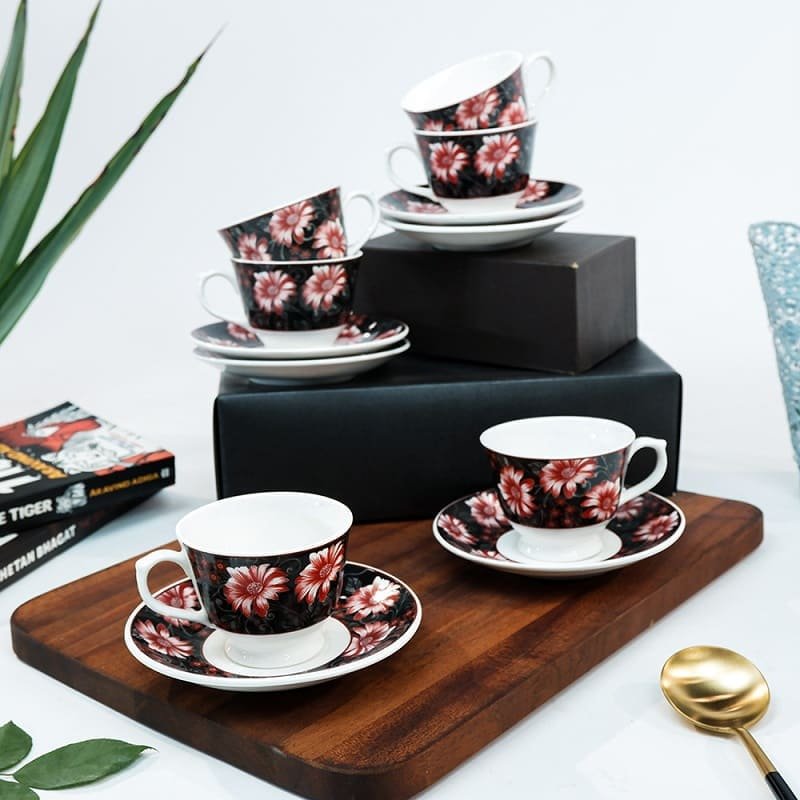 Buy our floral teacup and saucer set which is not only functional but also aesthetically pleasing. The beautiful design and vibrant colors add a touch of elegance and style to your home decor. Impress your guests and enjoy your morning beverages with our ceramic cup and saucer set. It also makes a perfect gift for any occasion, from housewarming parties to weddings.