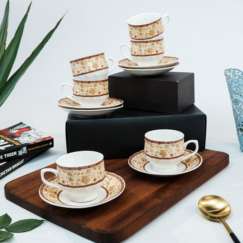 Introducing our beautifully crafted Teacup Set, the perfect addition to any kitchen or dining room. Our set includes cups and saucers, each uniquely designed with intricate patterns and a glossy finish. Made with high-quality ceramic materials, our cups and saucers are durable, dishwasher safe and perfect for daily use.