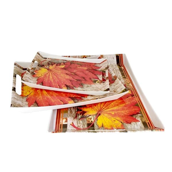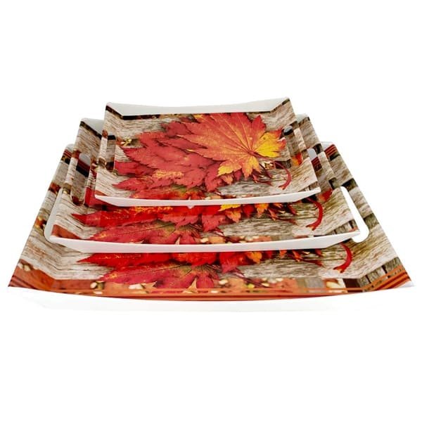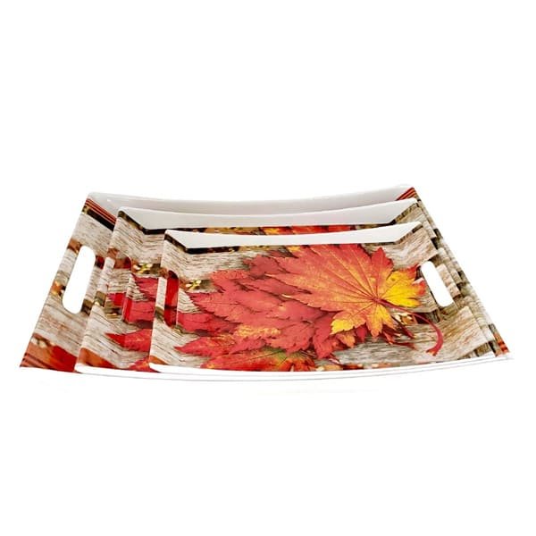 SND Homes Premium Flora Shape Modern Design Melamine Break Resistant Serving Tray (Small, Medium, Large, Multicolour) – Set of 3