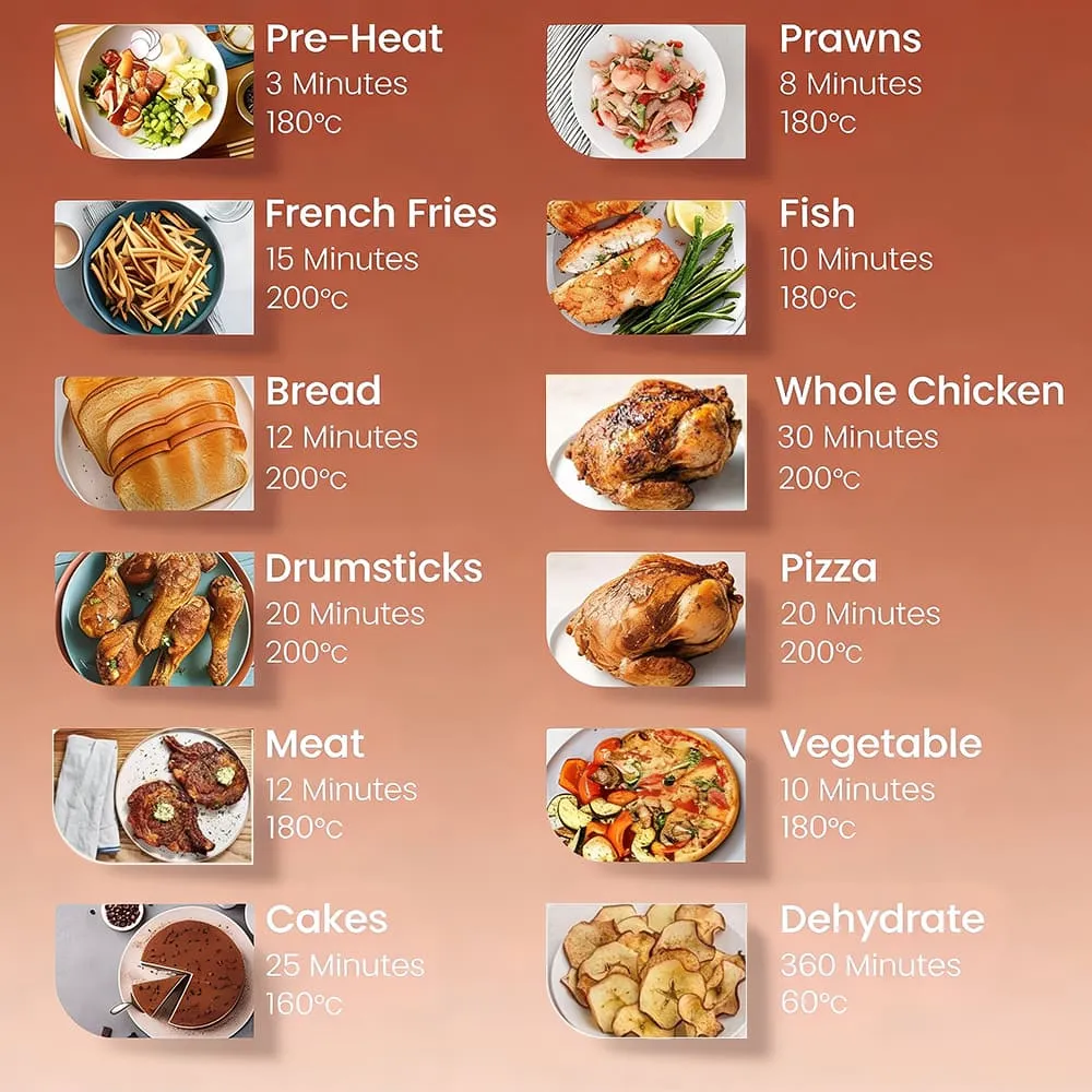 - 360° hot air circulation for even and crispy results